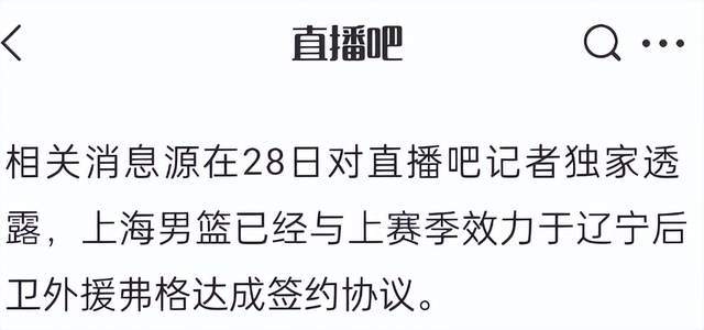 在CBA赛场,很少有外援在超过35岁的年纪还加盟冲击总冠军的球队,而就在上海男篮确定了洛夫顿和古德温之后,第三外援也终于公布,根据直播吧的消息,帮助辽宁男篮拿到三连冠的弗格确