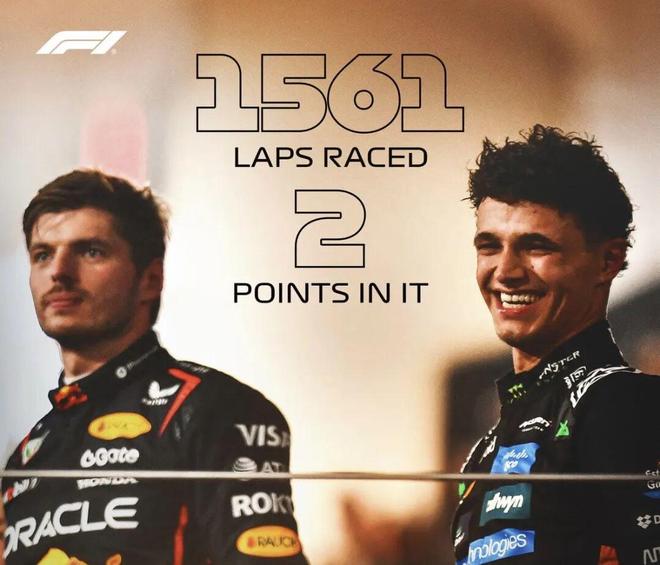 本赛季F1已经落下帷幕,在阿布扎比大奖赛历经鏖战、以毫厘之间的积分优势差锁定胜局后,兰多·诺里斯终于将他的名字铭刻进F1史册,首度加冕F1年度车手总冠军头衔。在一个跌宕起伏的赛季之后,F1官方总结了一些引人注目的关键数据,这些都成为了诺里斯最终登顶WDC的重要注脚......