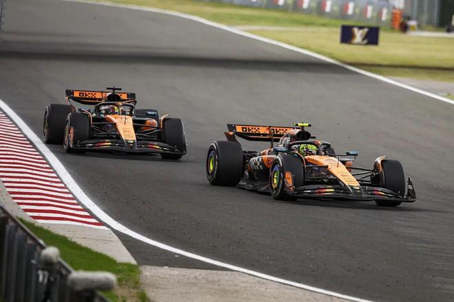 尽管皮亚斯特里数次尝试超越,但最终未能找到机会突破队友的防守——冲线时仅落后诺里斯0.698秒。