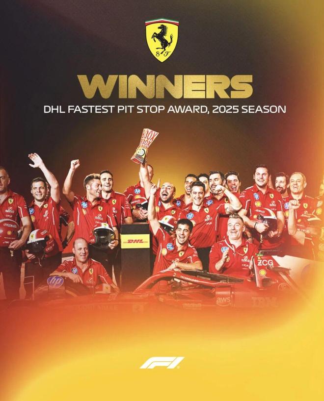 随着诺里斯成功登顶WDC,围场内已经开始了对于2026赛季的准备。不过北京时间今天,围场内一股红色旋风在本赛季F1结束之后,刷屏了各位车迷的手机!就在北京时间今天凌晨,F1官方社交媒体公布了本赛季最快换胎奖的得主,冠军竟然是——法拉利车队!