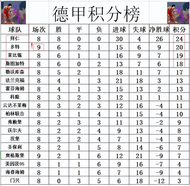 德甲最新积分战报多特小胜弱旅超莱比锡差拜仁4分升至第2