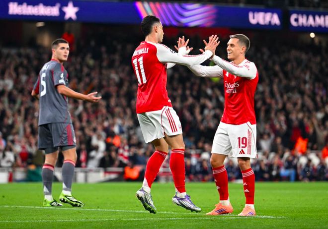 20!马丁内利萨卡破门阿森纳欧冠两连胜0丢球加布里埃尔伤退