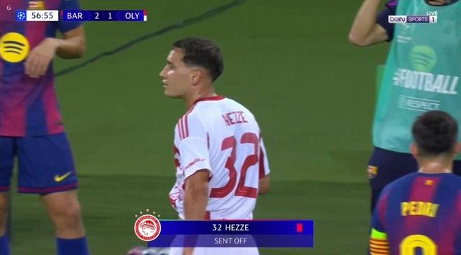 雷速体育10月22日讯 北京时间今天凌晨,巴萨在欧冠联赛阶段第三轮比赛中6-1大胜奥林匹亚科斯。值得一提的是,本场比赛第56分钟,赫泽对卡萨多犯规,吃到第二张黄牌,两黄变一红被罚