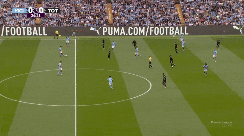 随着谢尔基、赖因德斯、尼科-冈萨雷斯和马尔穆什在过去12个月的加盟,曼城拥有更多技术型球员可以在狭小空间内配合,试图从中路撕裂对手防线。以下序列是一个很好的例子,展示了这四名球员上个月对阵热刺时如何将球推进到对方禁区前沿——符合The Athletic对“快速节奏”的定义。