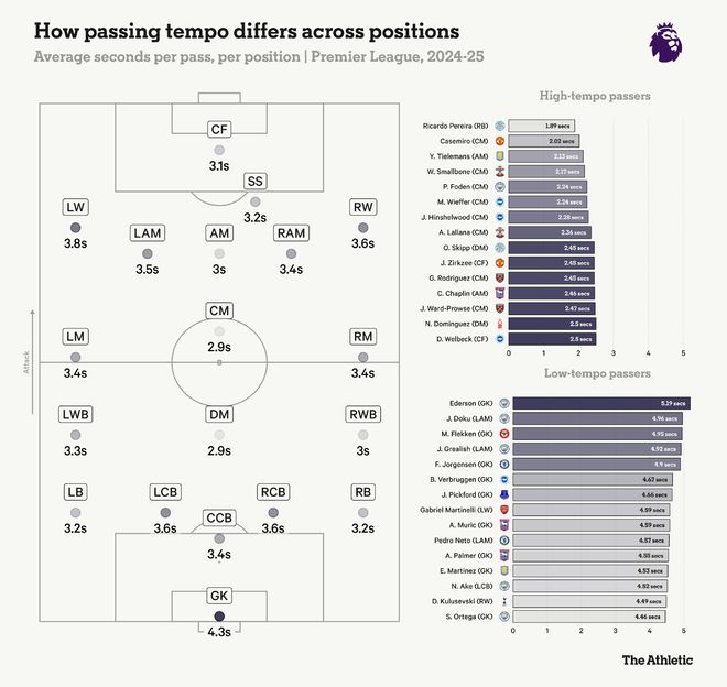 值得注意的是,比赛节奏往往会因球员的角色而变化。分析每个位置的平均传球节奏得出了一些有趣的结果。