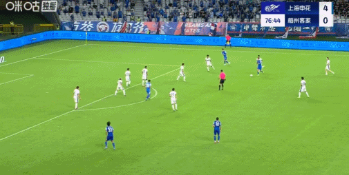 第76分钟,于汉超送妙传,杨泽翔轻松破门,申花5-0!
