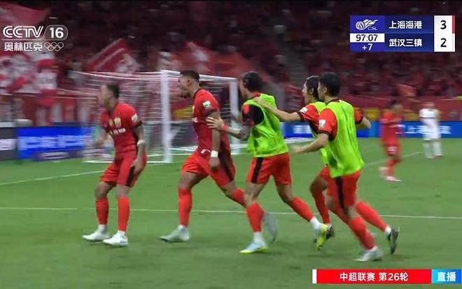 补时第90+7分钟,莱昂纳多禁区外远射,门前无人碰到皮球,直接破门,海港3-2压哨绝杀!