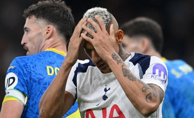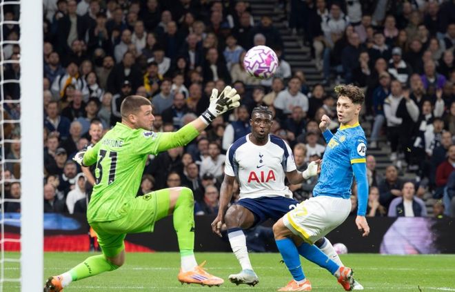 本场比赛热刺排出4231阵型。里沙立松顶在最前面。库杜斯、贝里瓦尔和哈维-西蒙斯的进攻组合联袂出击。帕利尼亚和本坦库尔组成双后腰。斯彭斯、罗梅罗范德芬和乌多基组成4中场。维卡里奥担任首发门将。布伦南-约翰逊和萨尔坐在替补席待命。